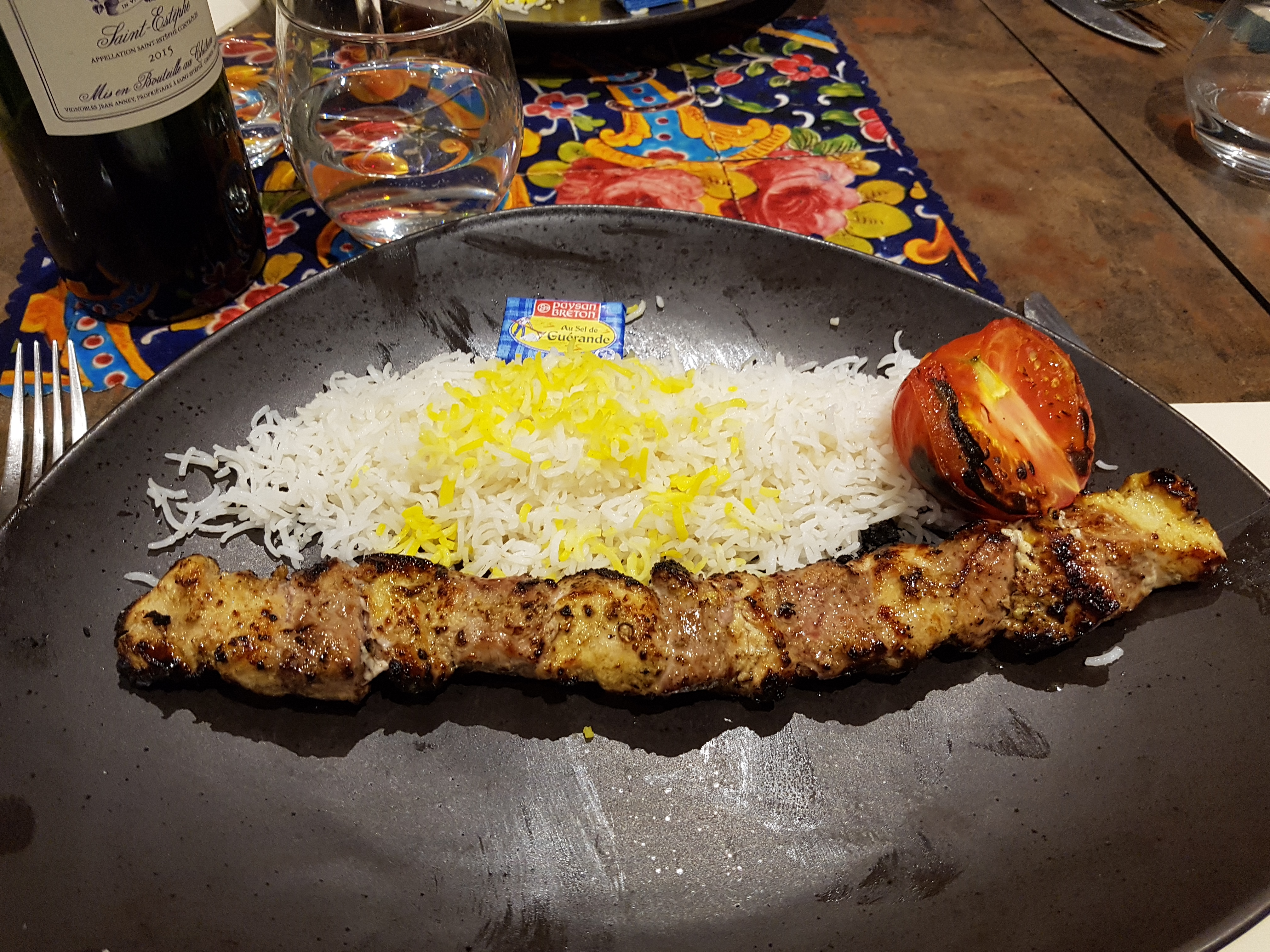 C'était bon, surtout l'entrée. Mais j'avoue ne pas vraiment apprécier la cuisine iranienne, ou en tout cas ce que j'en ai goûté : essentiellement des brochettes et du riz. Les desserts sont biens.